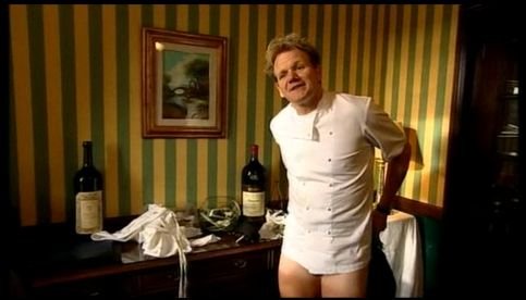 Gordon Ramsey folyamatosan nyomja a rizsát – még öltözés közben is. Így aztán kénytelenek vagyunk végignézni azt is, ahogy a séf szakszerű mozdulatokkal a ruháit hámozza magáról és megvillantja, milyen alapanyagot tud bedobni a lecsóba. Hölgyek, mit szólnak a kínálathoz?